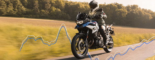 Mais poder, mais diversão Puro prazer de pilotagem em todos os percursos. O novo motor duplo paralelo da F 800 GS oferece mais potência com uma curva de torque melhorada. Graças à curva de potência otimizada, a F 800 GS atinge mais cedo a sua potência máxima de 87 CV @ 6.750 rpm, com uma curva de binário máximo simultaneamente aumentada de 91 Nm às 6.750 rpm.