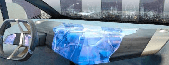 Shy Tech da próxima geração. Toda a informação relevante é projetada na zona inferior do ecrã a toda a largura do veículo. Estes dados podem ser movidos diretamente para o campo de visão do utilizador ou serem ocultados, conforme pretendido.