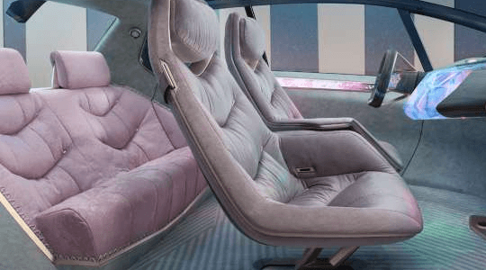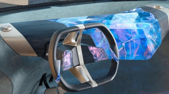 DESTAQUES INTERIORES DO BMW i VISION CIRCULAR. No interior, o BMW i Vision Circular procura criar um ambiente de luxo, empregando materiais e processos de produção que são indicativos de uma abordagem responsável do ambiente e dos seus recursos.