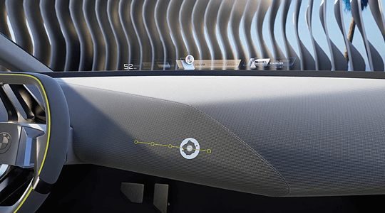 HEAD-UP DISPLAY EXTENDIDO E EM ESCALA AUMENTADA, COM O BMW MIXED REALITY SLIDER. O BMW Mixed Reality Slider é o controle operacional central, o qual gradualmente transforma o seu para-brisa em um portal de grande escala, para proporcionar a você uma experiência digital.