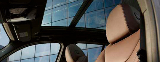 Teto solar panorâmico Quando aberto, o teto solar panorâmico proporciona ar fresc e luz natural para o interior do veículo. Ele abre e fecha de forma totalmente automática, basta apertar um botão ou usar a chave do veículo. Equipado com funções de deslizamento e elevação, o teto solar se enrola ao abrir e protege do vento