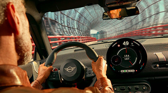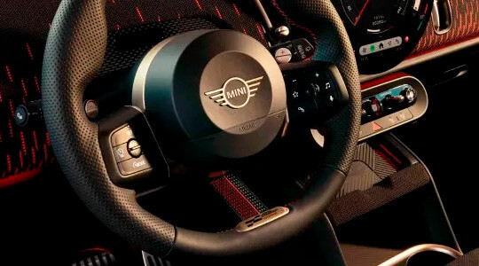 Com silhueta robusta, arestas e linhas precisas somadas à aerodinâmica, os poderosos elementos de design do JCW criam uma presença marcante e faz com que ele se destaque pela autoconfiança. Os acabamentos e materiais escolhidos um a um surpreendem com estilo único extraído da emoção das pistas de corrida.