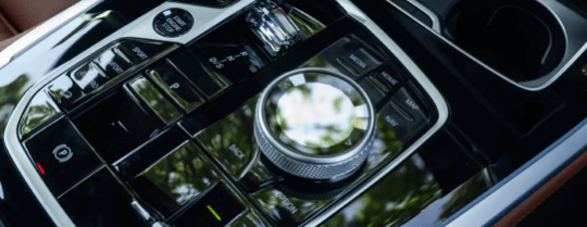 Na aplicação de vidro 'CraftedClarity', a alavanca seletora, o BMW Controller e o botão Start/Stop são feitos de elementos de cristal feitos à mão.