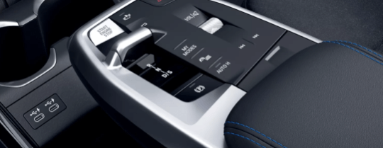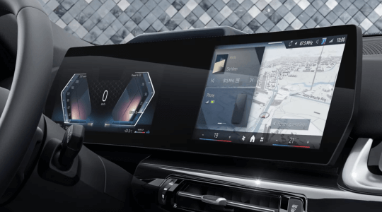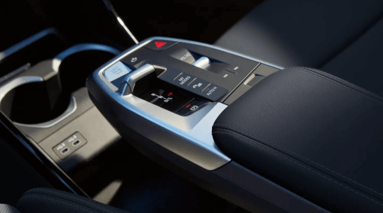 No console central, você pode controlar funções importantes com um leve toque. Há espaço aqui para seu smartphone, que pode ser carregado na bandeja de carregamento sem fio.